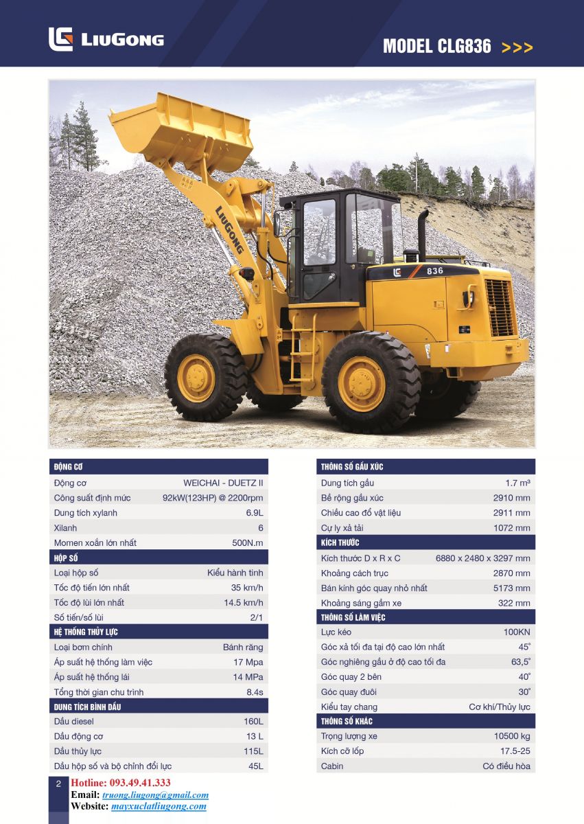 1. Tổng quan về máy xúc lật liugong 836 - Gầu 1,7 m3